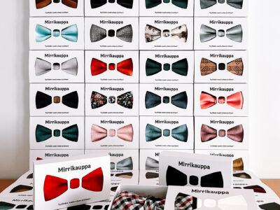 Mirrikauppa sai alkunsa vuonna 2016 omasta tarpeesta ja halusta tuoda laaja valikoima erilaisia rusetteja tarjolle helposti tilattavaksi Suomesta. Jälleenmyynnin jälkeen rinnalle tuli aika pian myös oma edelleen laajeneva mallisto, joka kattaa kotimaiset Nâru-poronnahkarusetit, pellavarusetit, farkkurusetit, korkki- ja samettirusetit, puuvillarusetit ja taskuliinat, kaikki omin käsin tehtyjä. Mirrikaupasta siis ehkä maan laajin valikoima erilaisia rusetteja niin arkeen kuin juhlaankin. Valikoimaan lisättiin myös korvakorut, joten tarjolla on myös naisille asusteita. Katso mallisto täältä.