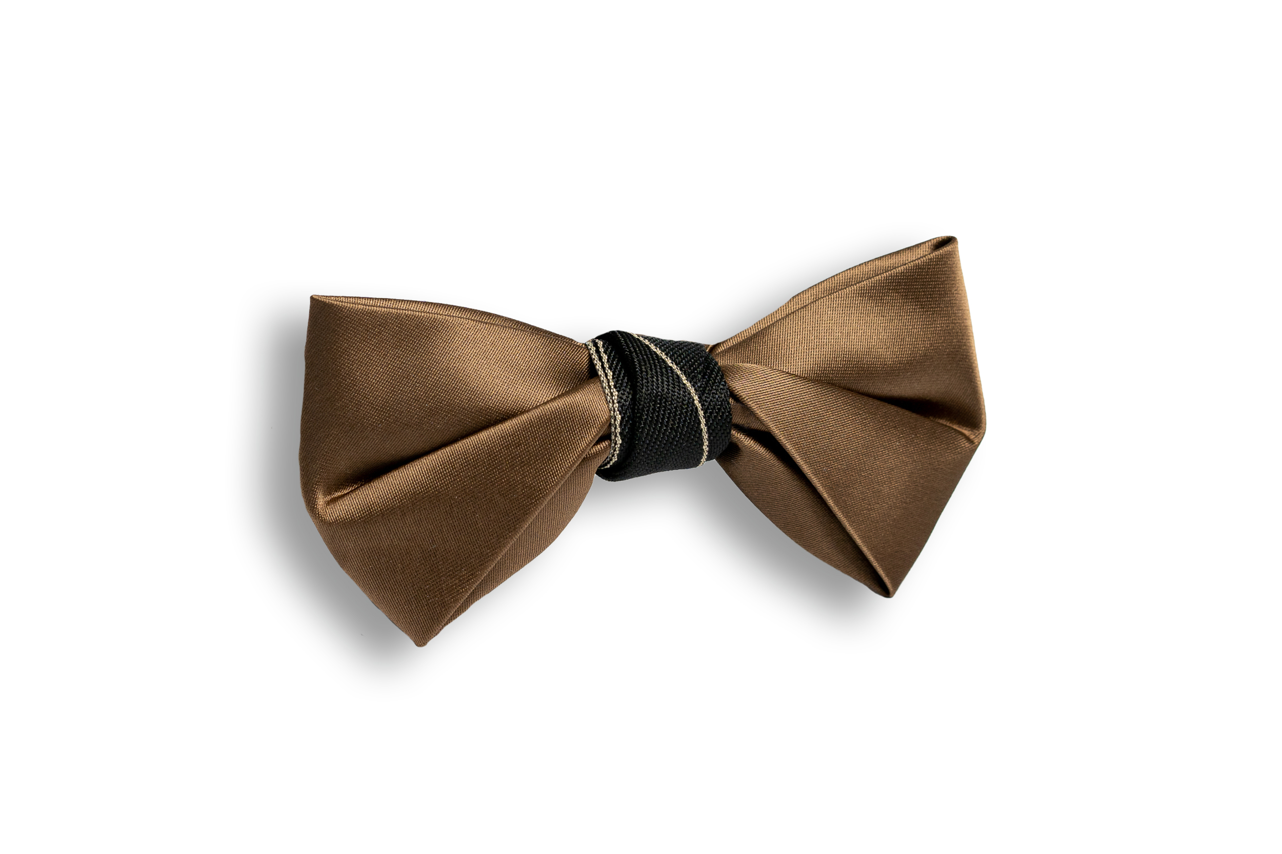 Ruskeanvärinen rusetti viimeistelee juhlatyylisi. Vähän normaalista poikkeava rusetin ompelu tekee tästä vähän spesiaalimmin. Upea mihin tahansa juhlaan vaalean ja tummankin paidan kanssa.